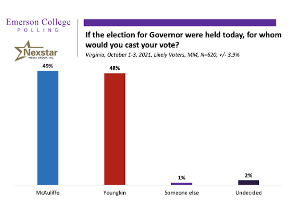 Democrat terry mcauliffe, who served as the state's governor from 2014 to 2018, and republican glenn youngkin have each run a tight.